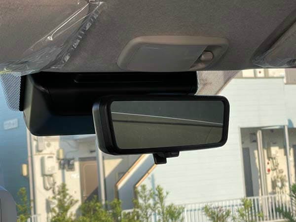 車両後方の映像をインナーミラー内のディスプレイに表示。切り替えレバーを操作する事で鏡面ミラーとデジタルの切り替えが可能に。