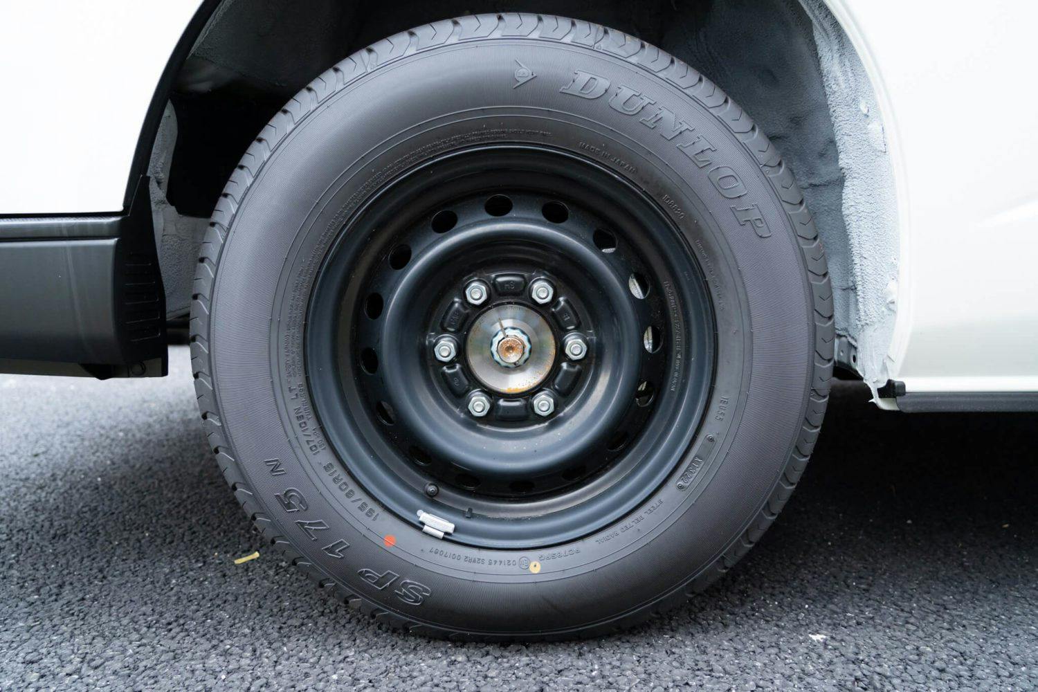 ハイエースの純正ホイールは15インチを採用しており、ハイエース純正のタイヤサイズは前後とも195/80R15 107/105L LTもしくは185/75R15 106/104L LTとなっています。